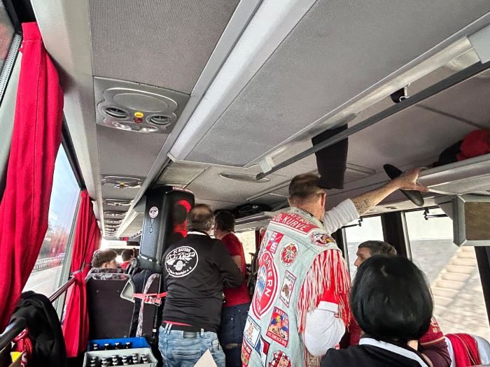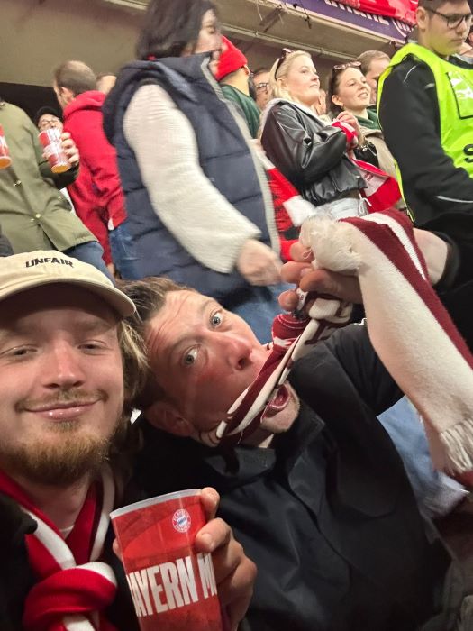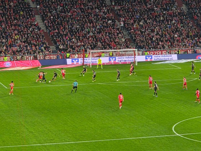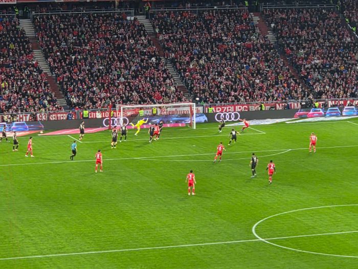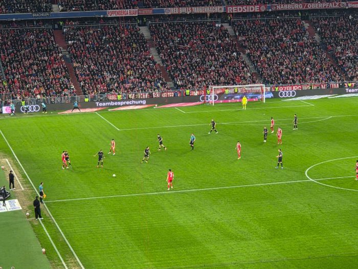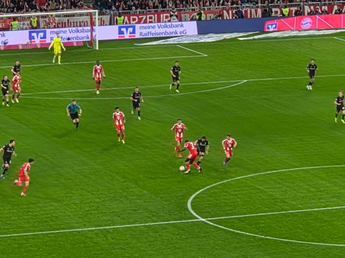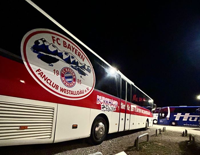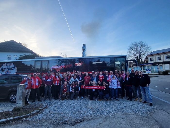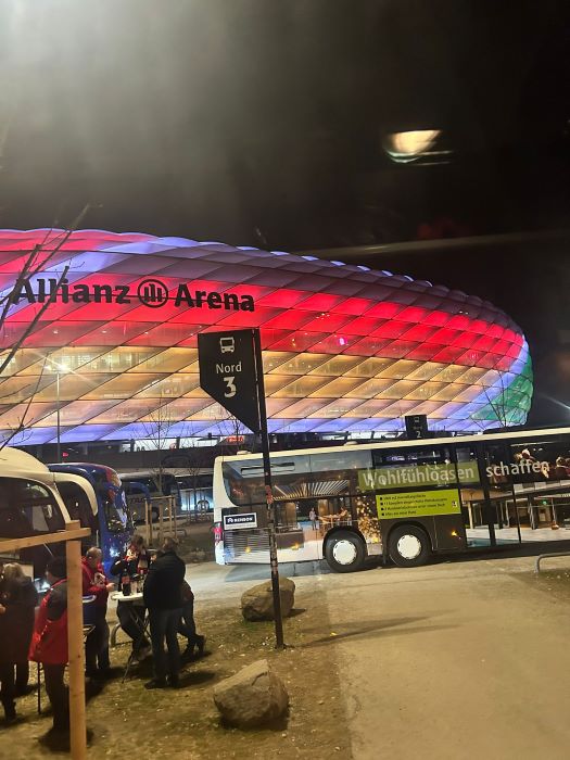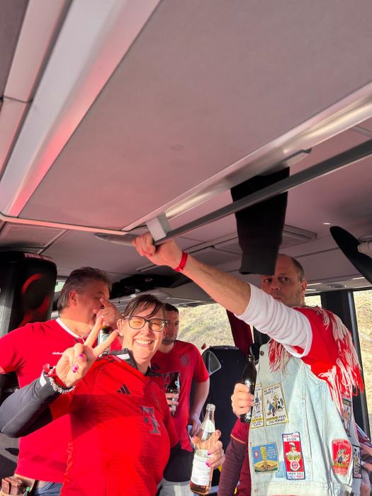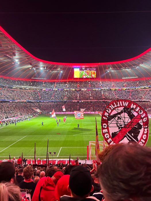 hier noch als Nachtrag Bilder und Emotionen von unserm Bus beim Heimspiel unseres FC Bayern München gegen Borussia Mönchengladbach , das wir deutlich durch die Tore von Luiz Diaz , Konrad Laimer , Jamal Musiala und Nicolas Jackson mit 4:1 für uns entscheiden konnten.