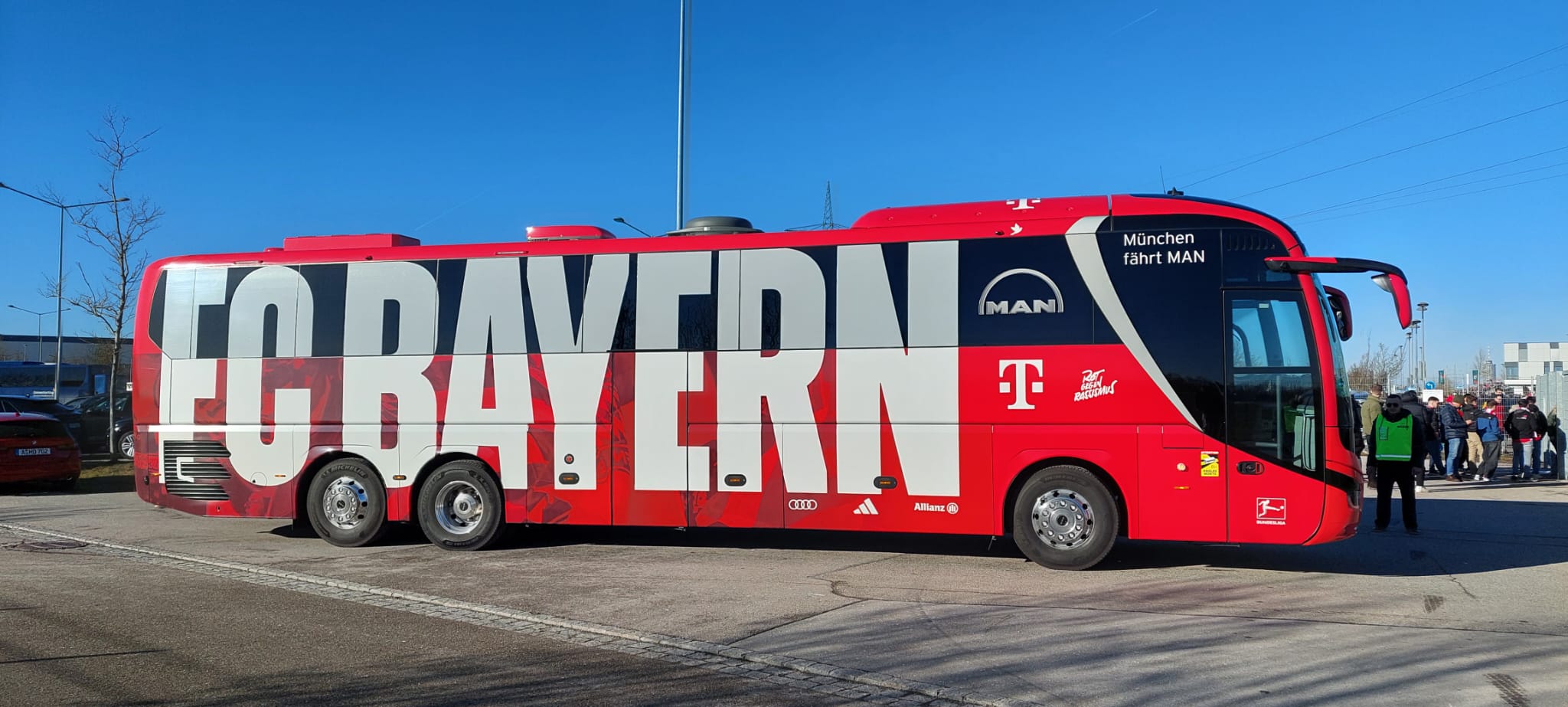 Hier das Gruppenbild des Busses Fc Bayern München gegen RB Leipzig